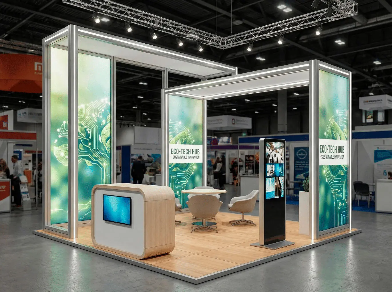 It’s large enough to support clear zoning and small meetings, but not so large that the project becomes complex by default. That balance is why many exhibitors choose it: you can create presence, host real conversations, and still keep scope controlled.
