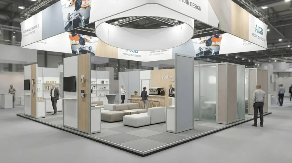 This is where many stands get it wrong. They build meeting areas that look private but feel unapproachable. Or they overbuild walls that create a psychological barrier. Or they put the “serious conversation” zone so far inside that nobody knows what to do when they enter.